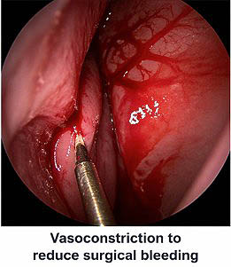 Hemorrhage during endoscopic surgery poses specific challenges. The scope lens can fog with blood rapidly. Frequent cleaning interrupts the operative flow unnecessarily. Vasoconstriction from cocaine limits these interruptions significantly.